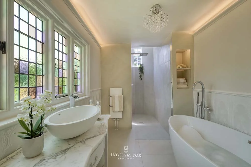 At this level buyers do not expect the outdated: Kitchens need to feel current, or ‘classic’ even, but not dated. The same goes for bathrooms. For both photographs and viewings, lighting should take its lead from filmsets, enhancing proportion and setting mood. Whatever the season, gardens need to paint a picture of lifestyle rather than look like hard work or something that will require heavy maintenance.